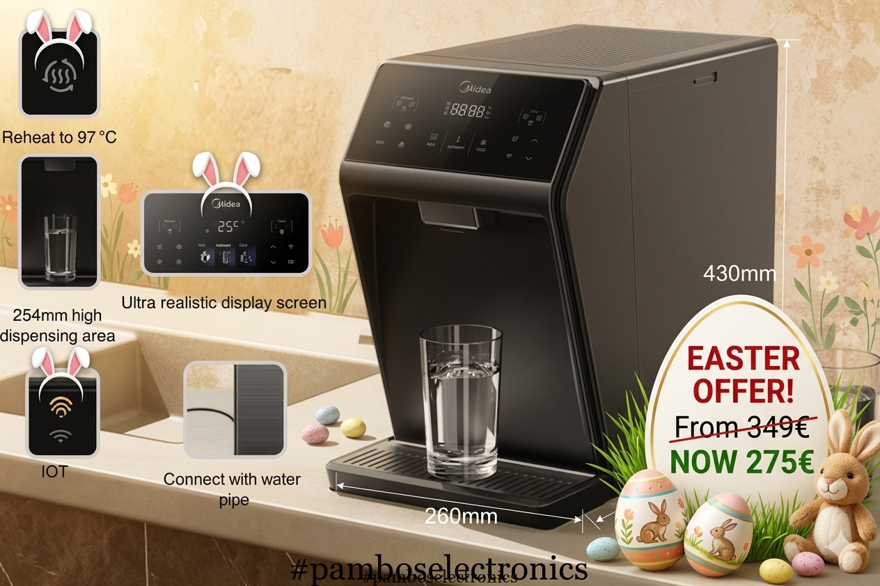 The Midea JL2345T Wi-Fi water purifier features a beautiful, modern design, double water filter and UV filter for crystal water, with a choice of hot, cold and room. You connect directly to the water supply. For every modern home that will make your everyday life easier.