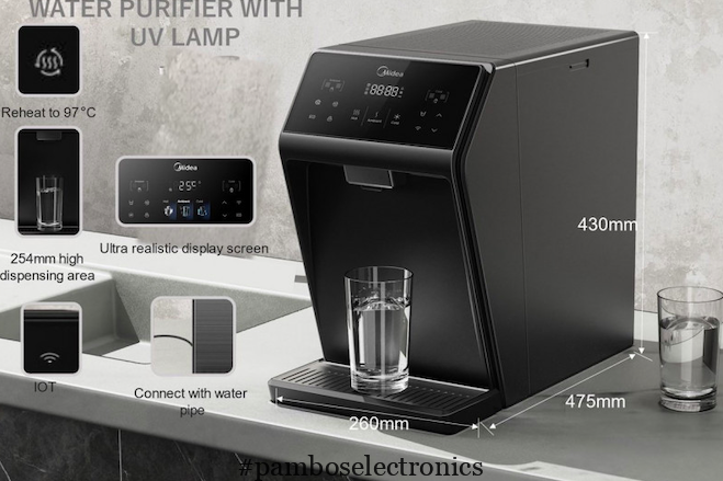 The Midea JL2345T Wi-Fi water purifier features a beautiful, modern design, double water filter and UV filter for crystal water, with a choice of hot, cold and room. You connect directly to the water supply. For every modern home that will make your everyday life easier.